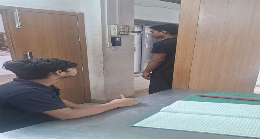 The photo shows the main entry and exit gate of the Girls & Boys Hostel, equipped with a thumb access biometric system for secure entry and exit. This system ensures that only authorized residents can pass through the gate. Each time a student enters or exits, the system automatically sends a notification message to their parents, keeping them informed in real-time about their child’s movement. This setup enhances security, improves attendance tracking, and assures parents about the safety of their children.